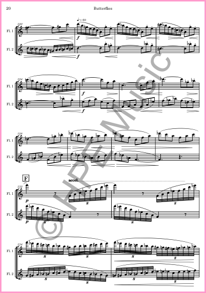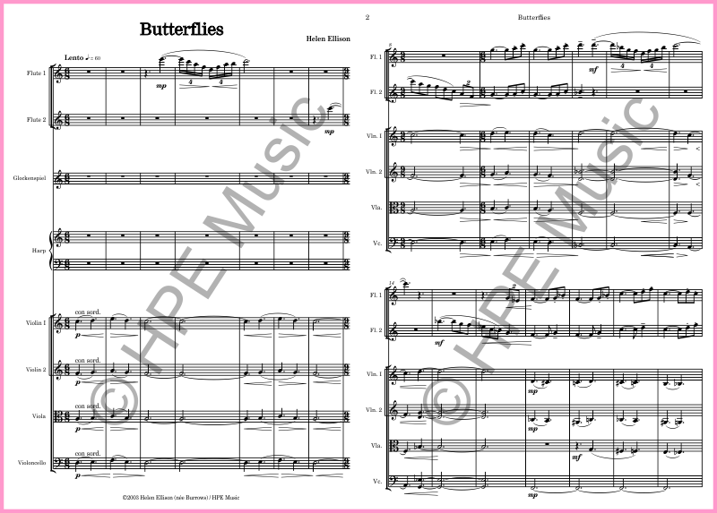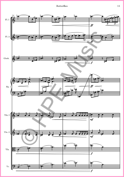 Instrumentation: 2 Solo Flutes, Glockenspiel, Harp and Strings (Violins 1 & 2, Viola and Cello).